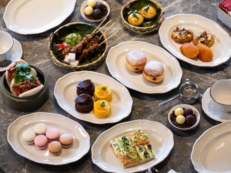 Delight in an afternoon tea of elegant small bites with Asian touches, served course by course to keep warm dishes warm and chilled treats perfectly cold. From Smoked Salmon Toast and Crispy Butter Chicken Bao Bun to Kelantan 70% Chocolate Cake and Passion Fruit Tart, the offering is as whimsical as it is refined. Desserts are also presented on our Petit Four Dessert Trolley alongside a selection of signature teas, making this afternoon tea perfect for good conversation in a relaxed setting.