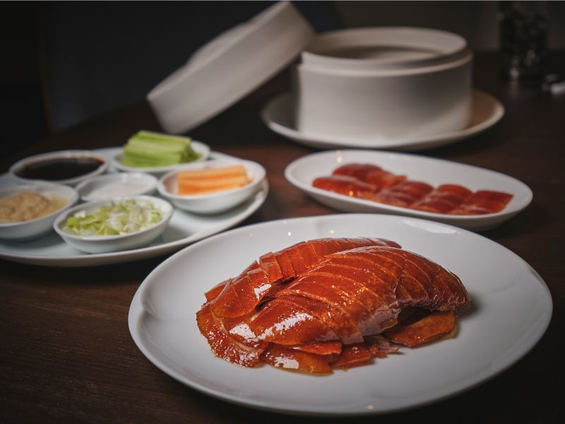 Our Signature Peking Duck is a timeless classic with a distinctive twist. Sourced from northern Chinese farms, it is roasted over rambutan and mangrove wood for 75 minutes, giving it a delicate smokiness and subtle fruity aroma. It is served tableside in two parts, crispy skin and tender meat, accompanied by delicate pancakes and a variety of condiments, inviting you to savour each bite your way.