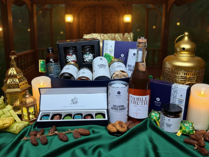 The spirit of giving during this festive season is a cherished way to share blessings and gratitude. Our thoughtfully curated hampers bring together traditional favorites and premium delights — from bangkit gula melaka, semprit cookies, onde‑onde cookies, gula apong nutmeg cookies, and beef serunding to sambal mak kau, medjoul dates, noble truth sparkling tea, kombucha, and more.